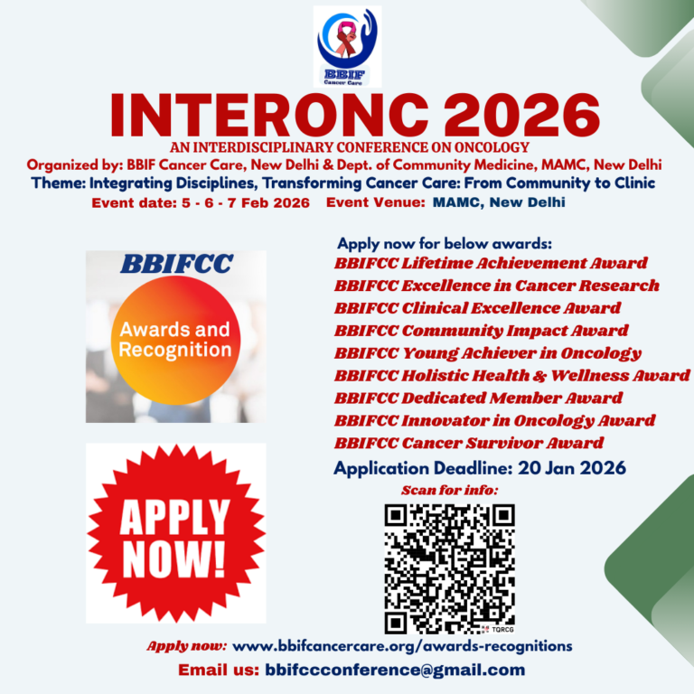 BBIF Cancer Care invites nominations for BBIFCC Awards & Recognition, to be announced during INTERONC 2026, an interdisciplinary conference on oncology.