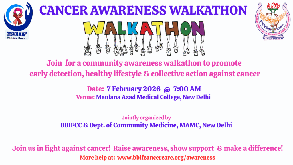 Be a part of the BBIF Cancer Care Walkathon 2026 and help us make a difference. Whether you run, walk, or cheer, every step counts in the fight against cancer. Be a Changemaker! At BBIF Cancer Care, we believe that awareness is a powerful tool in the fight against cancer. Our Awareness Programs aim to educate the community about cancer prevention, early detection, and healthy lifestyle choices. By raising awareness, we empower individuals to take proactive steps in managing their health and reducing their risk of cancer.