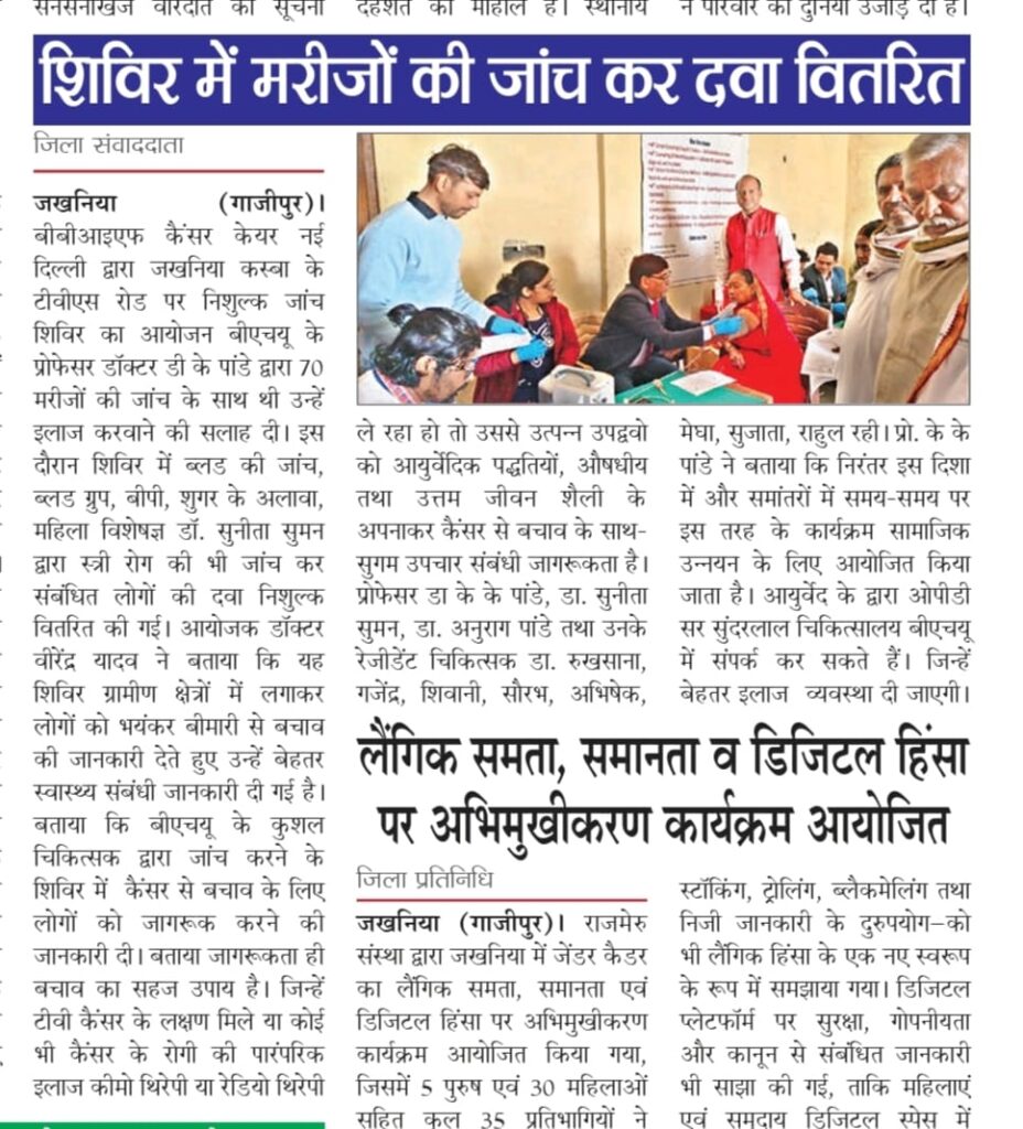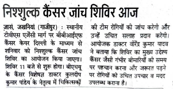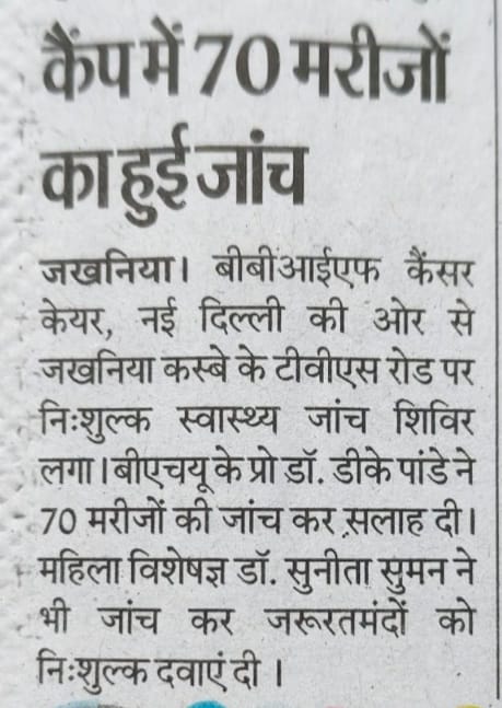 BBIFCC Cancer Awareness Camp organised on 29/11/2025 at Jakhaniya, Gazipur, UP – Click here